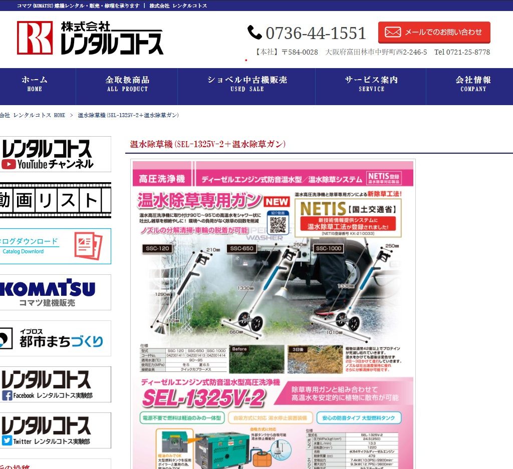 温水除草機(SEL-1325V-2+温水除草ガン)がレンタルコトスに入荷いたしました!